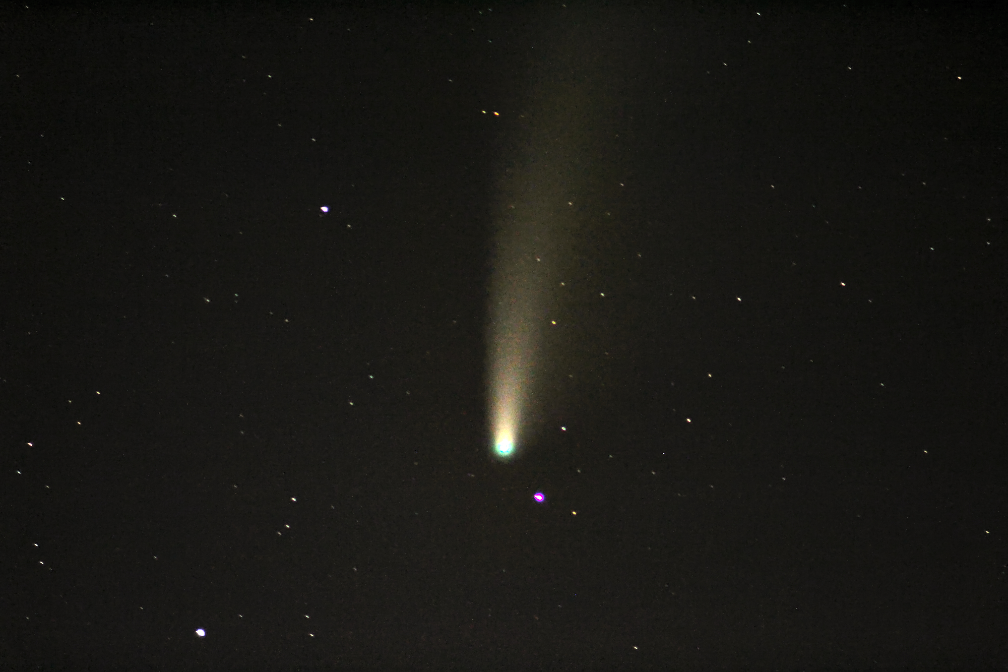 NEOWISE comet with a Canon EOS 100D (3 s exposure, ISO 3200) through my Celestron Travelscope70 (70×400mm) on 19/07/2020 at 22:58 UTC. Exposure, contrast and brightness adjusted.