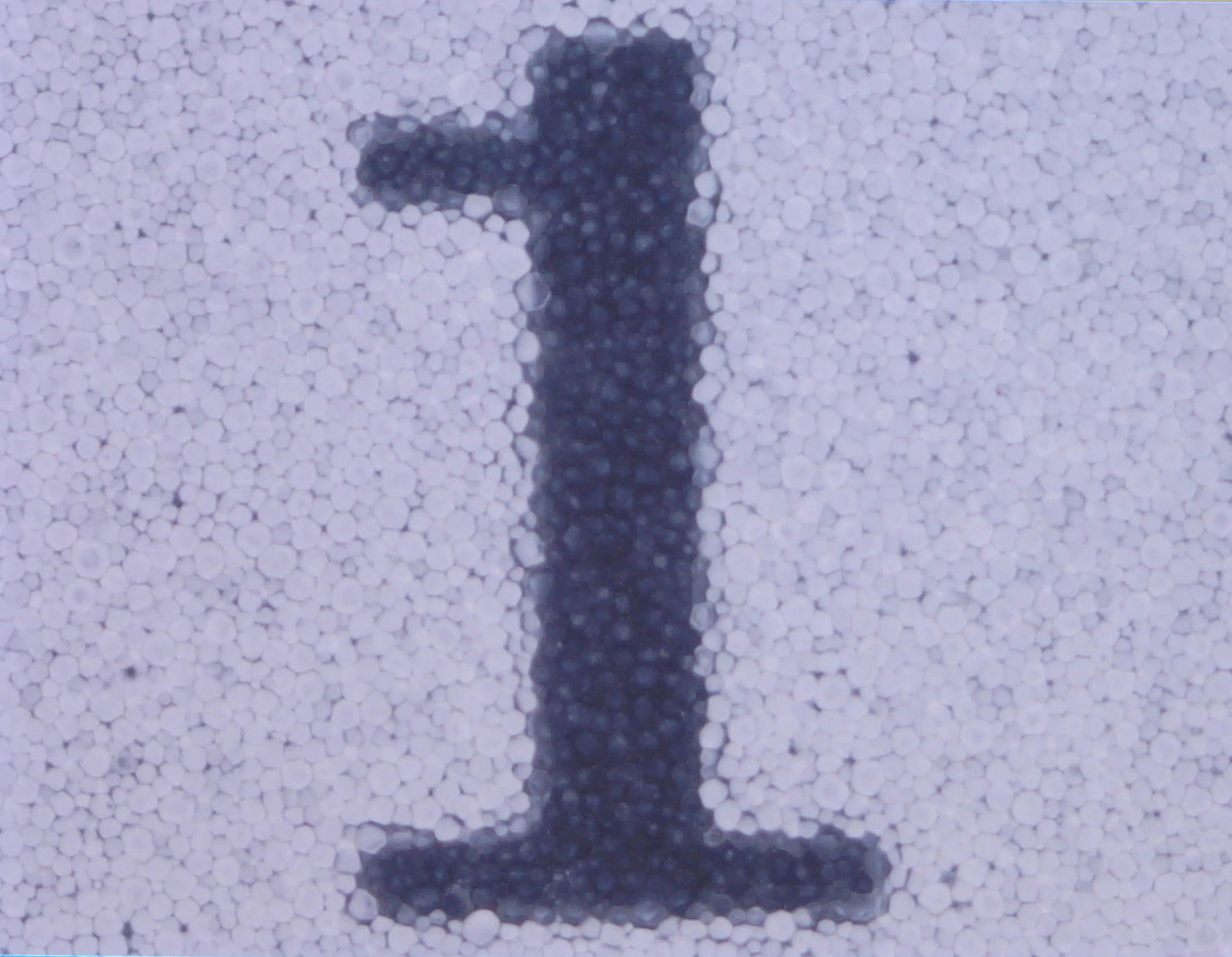 Close-up view on an e-ink display (price tag). The microcapsules that form the image are clearly visible.