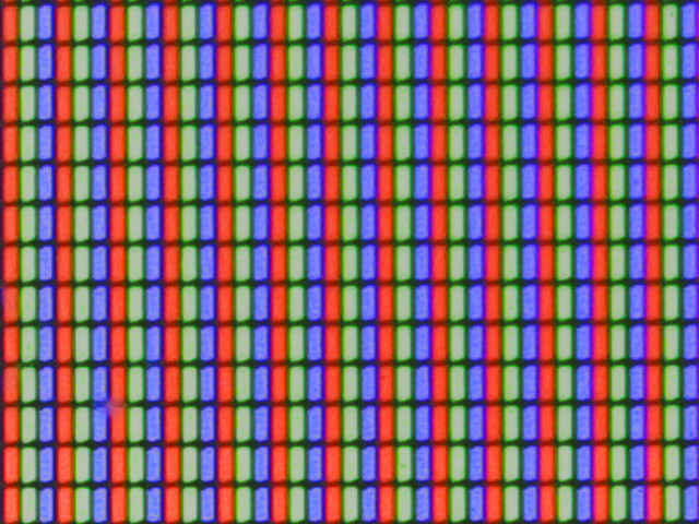 Red, green and blue subpixels of a TFT LCD display showing a white picture.
